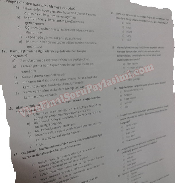 İdare Hukuku Dersi Final Soruları 17-11-2015, 00:33