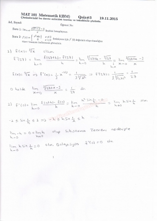 Matematik -1 Dersi Quiz Soruları ve Çözümleri 3-04-2018, 22:09