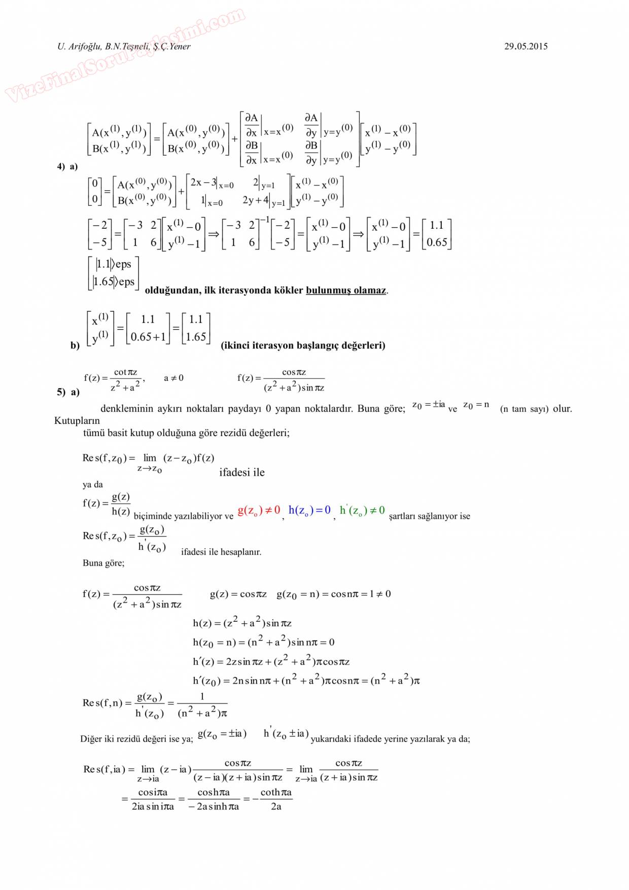 Sayısal Analiz Yaz Okulu Final Soruları 27-11-2019, 14:36