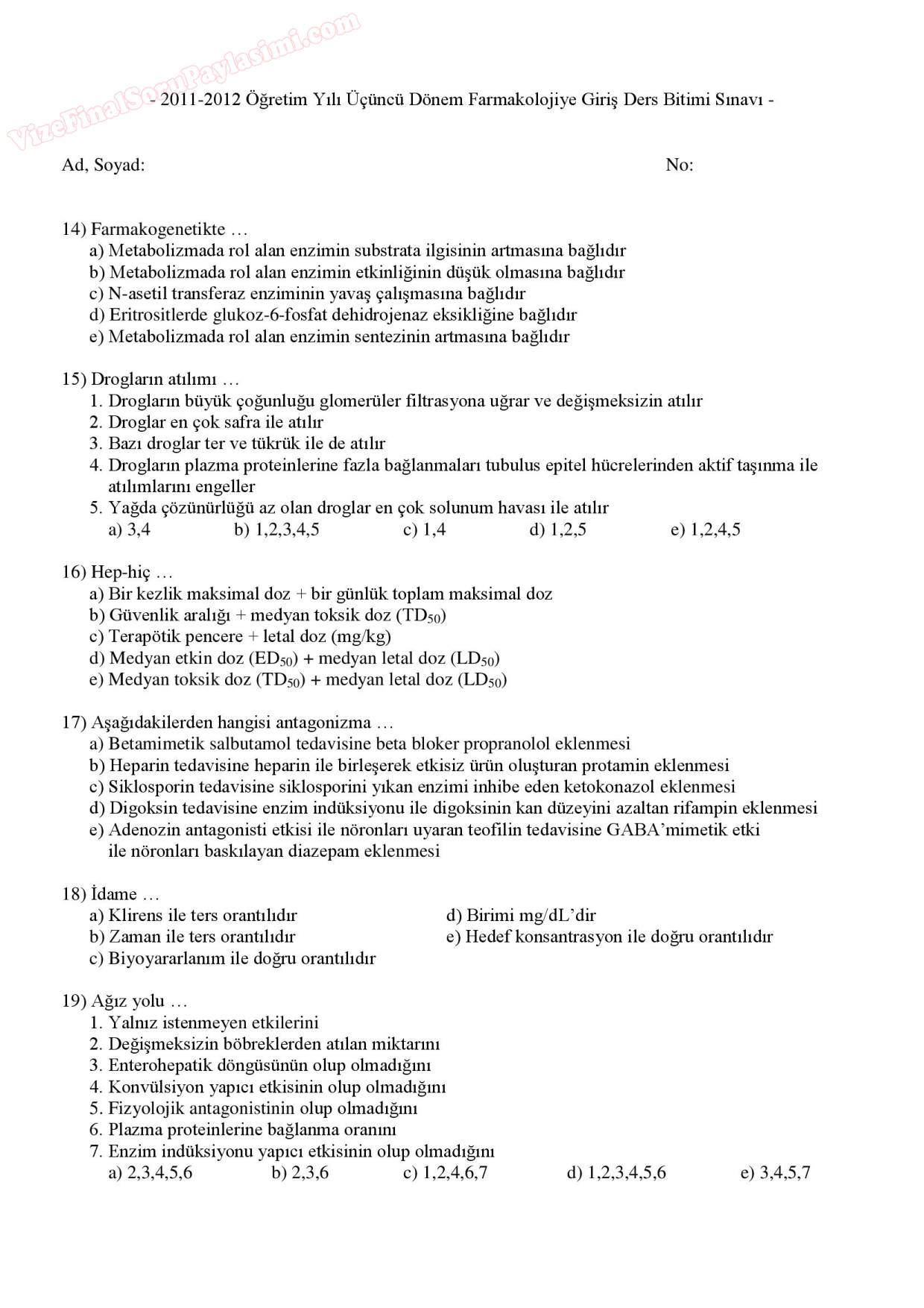 Farmakolojiye Giriş Dersi Bütünleme Sınav Soruları 5-05-2022, 00:55