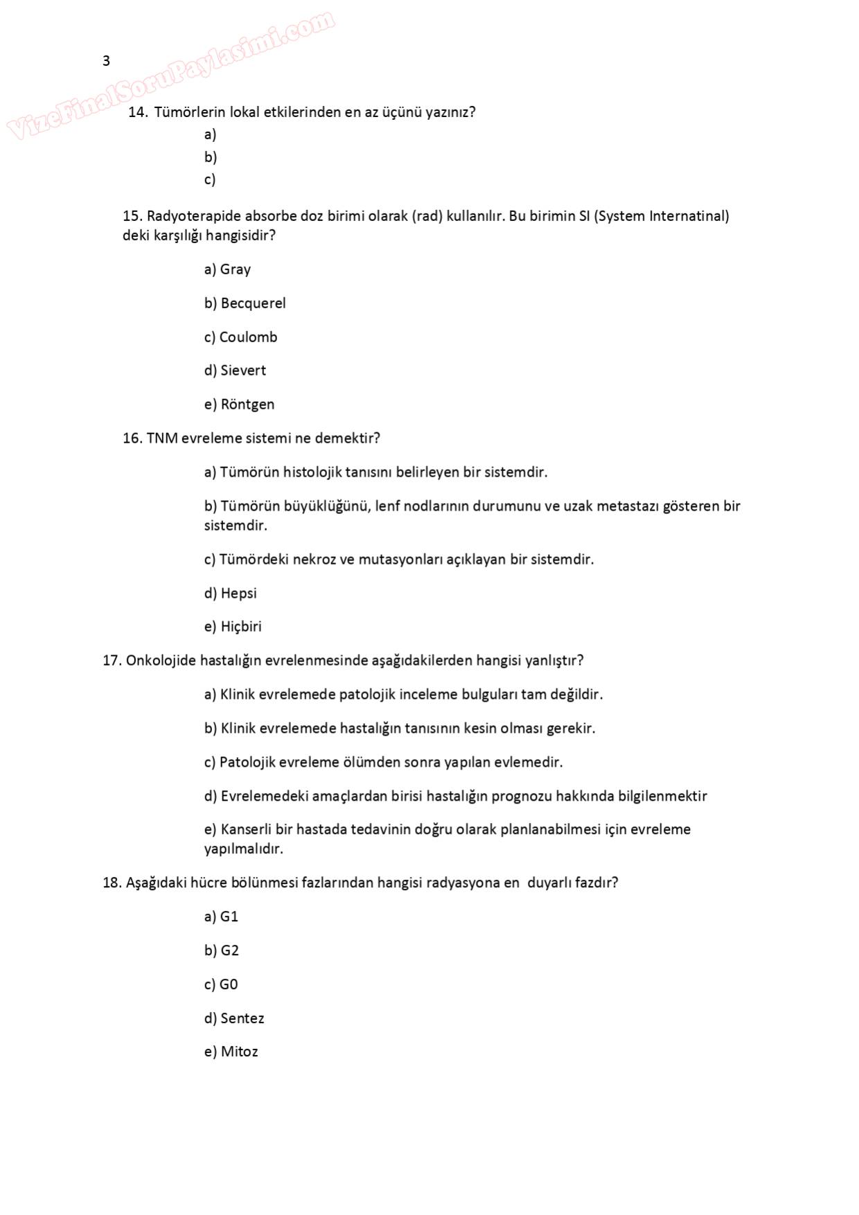 Radyasyon Onkolojisi C Grubu Sınav Soruları 14-10-2022, 16:47