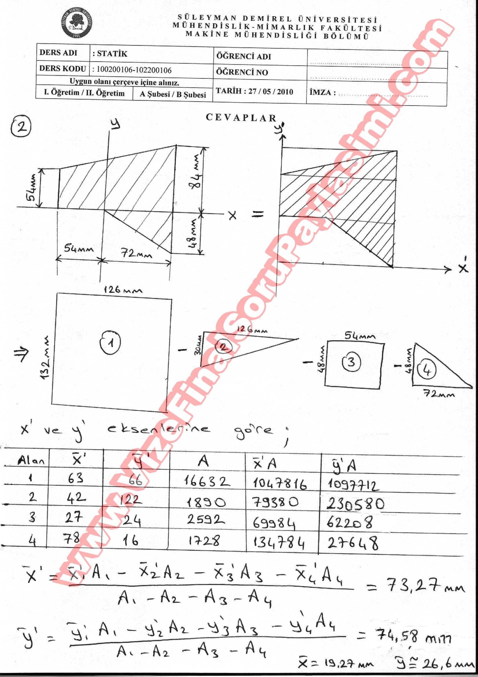 Vize ve Final Soruları / Süleyman Demirel Üniversitesi / Statik Dersi