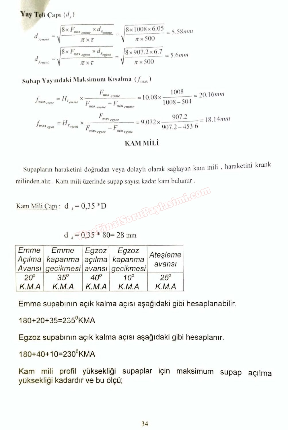 Motorlar Dersi Benzinli Motor Tasarımı Örnek Soru Çözümü