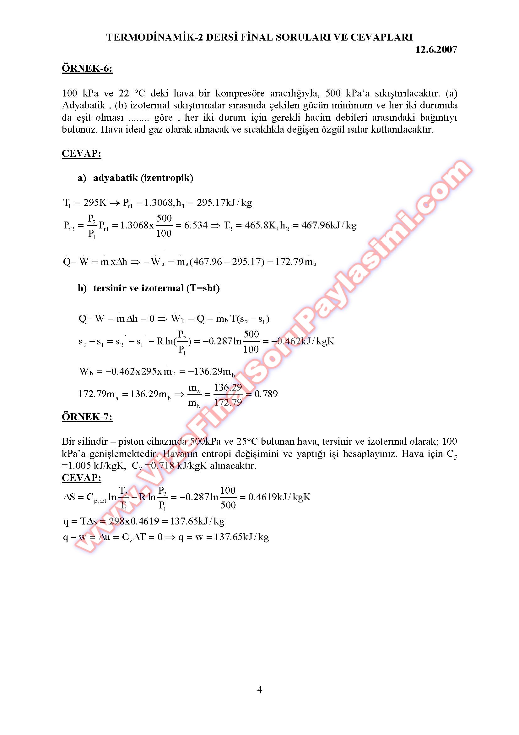 Cumhuriyet Üniversitesi Termodinamik-1 2007 Soruları