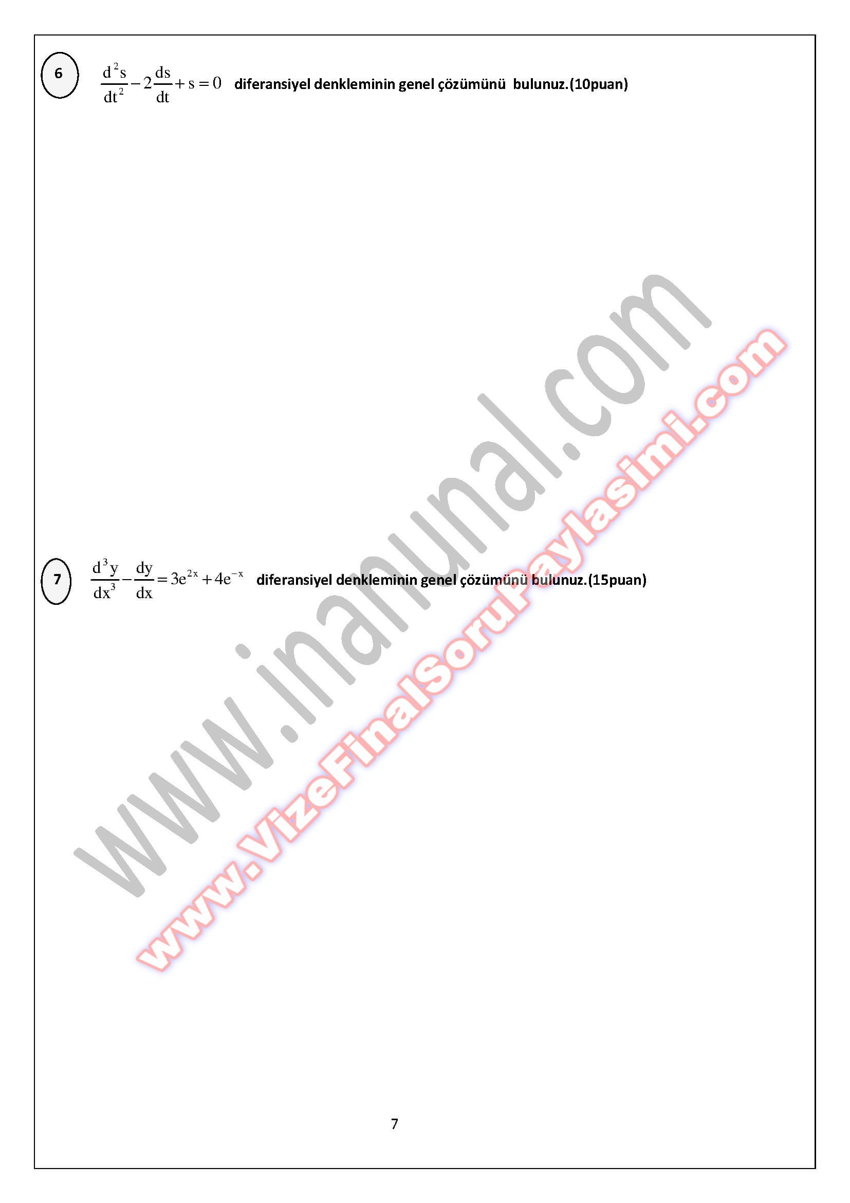 Tunceli Üniversitesi Mühendislik Matematiği Diferansiyel Denklemler Mazeret Soruları
