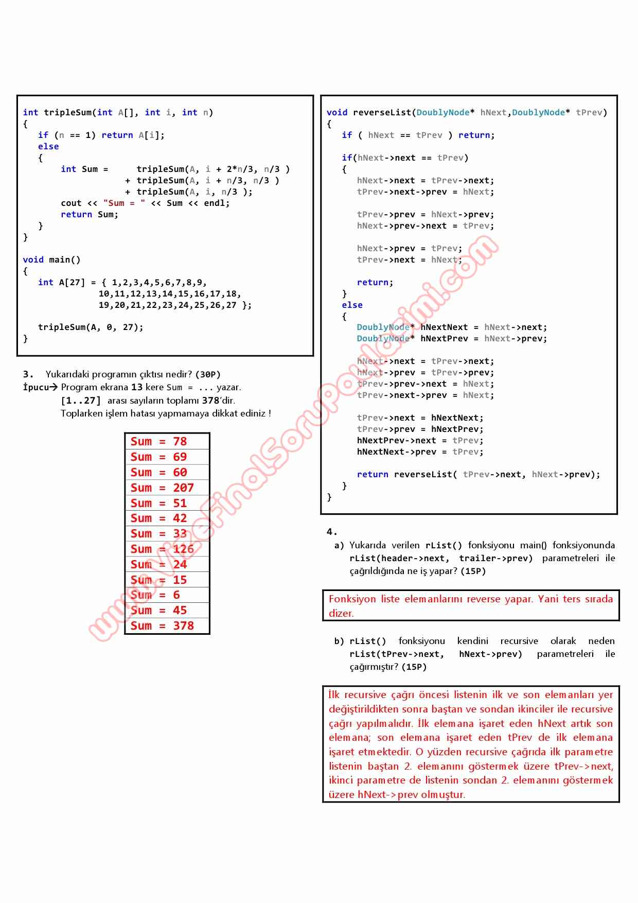 Vize ve Final Soruları / Karadeniz Teknik Üniversitesi / Veri Yapıları Dersi