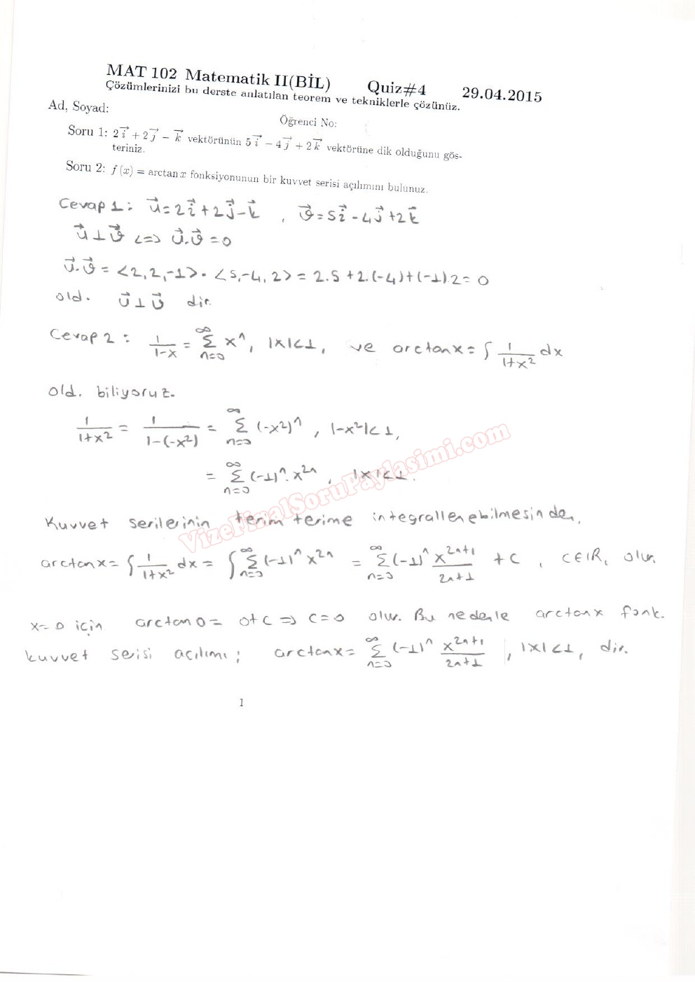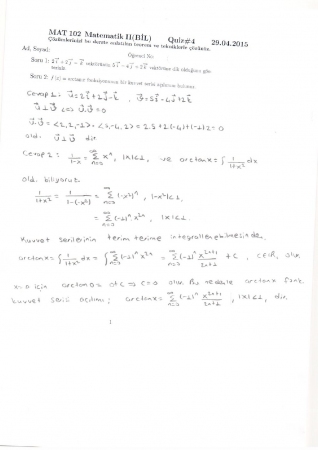 Matematik-2 Quiz Soruları Çözümleri Cevapları 2015 Melikşah Üniversitesi