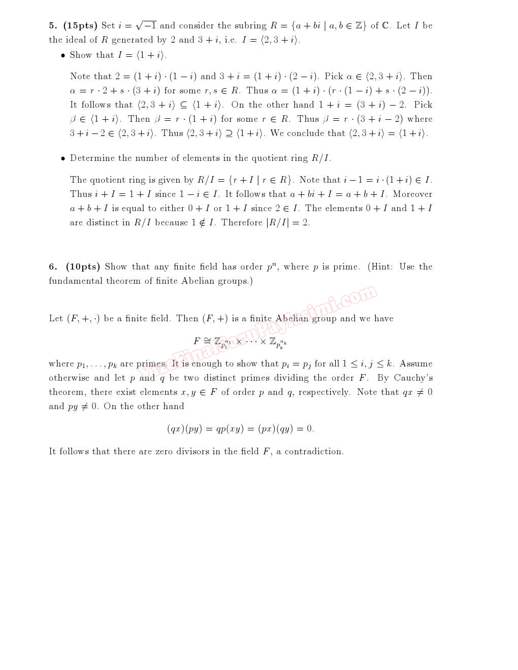 Abstract Algebra Second Midterm Exam Questions ODTU