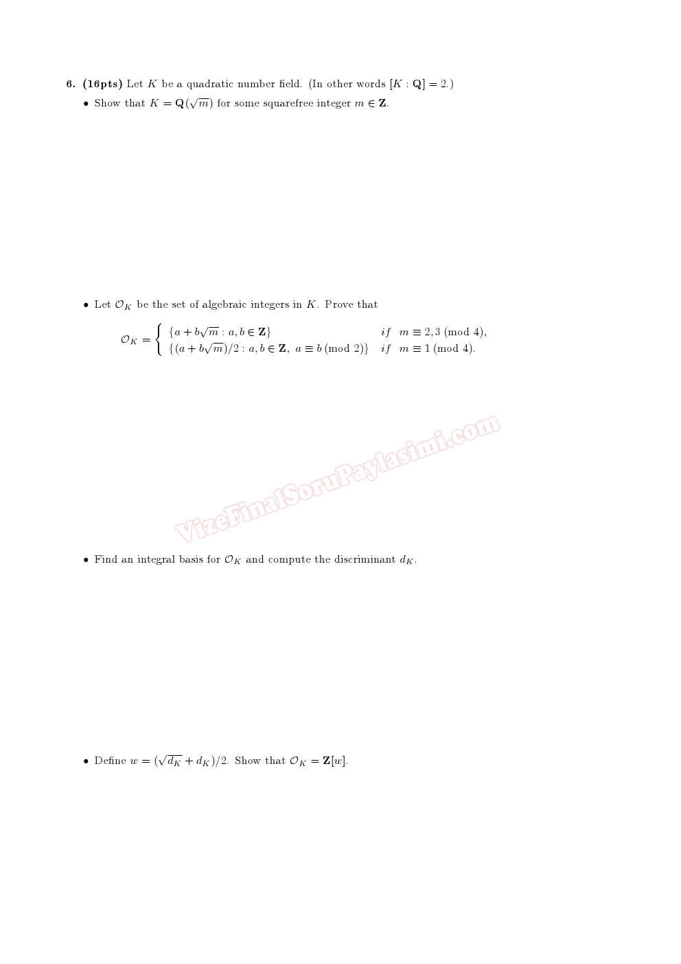 Algebraic Number Theory First Midterm Exam Questions ODTU