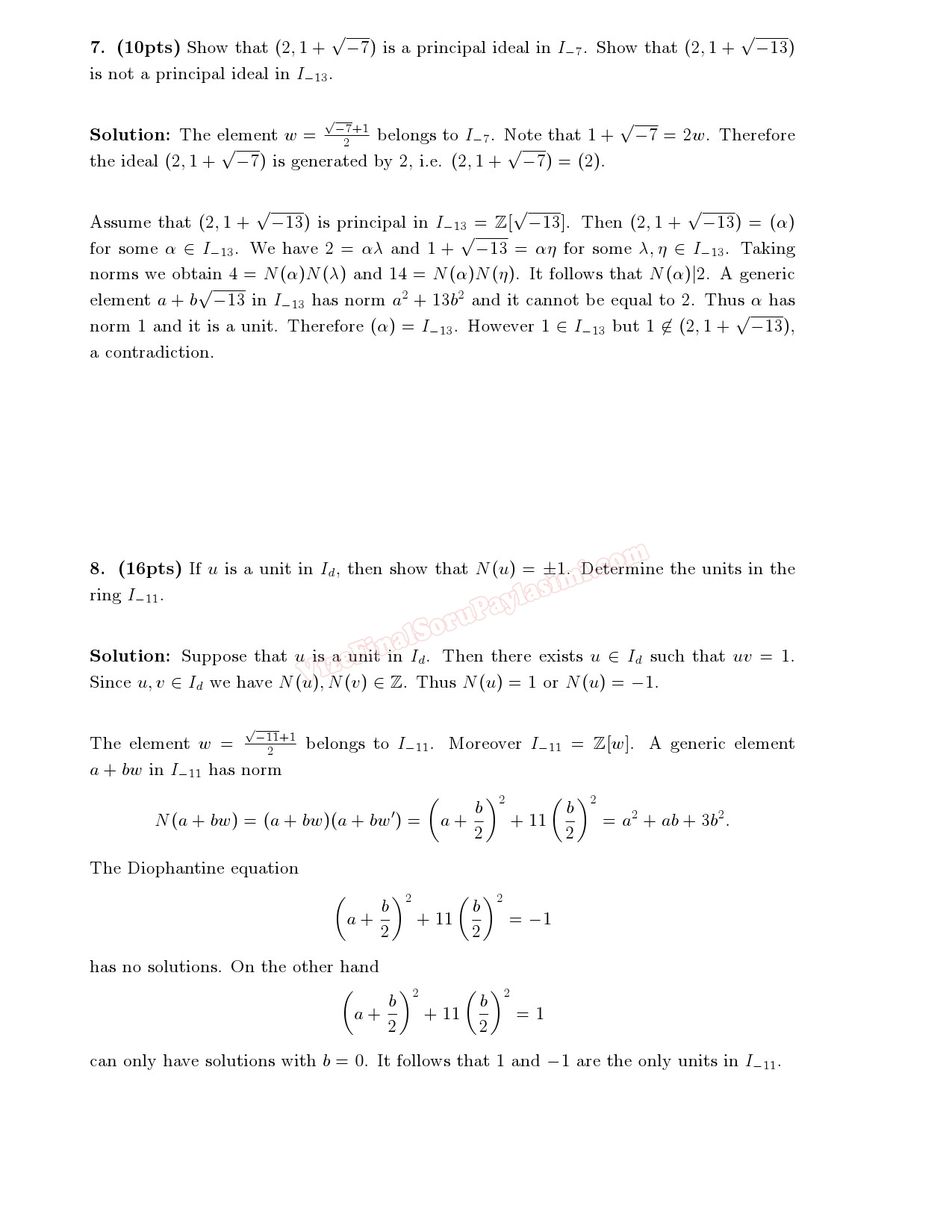 Elementary Number Theory 2 Second Midterm Exam Questions ODTU