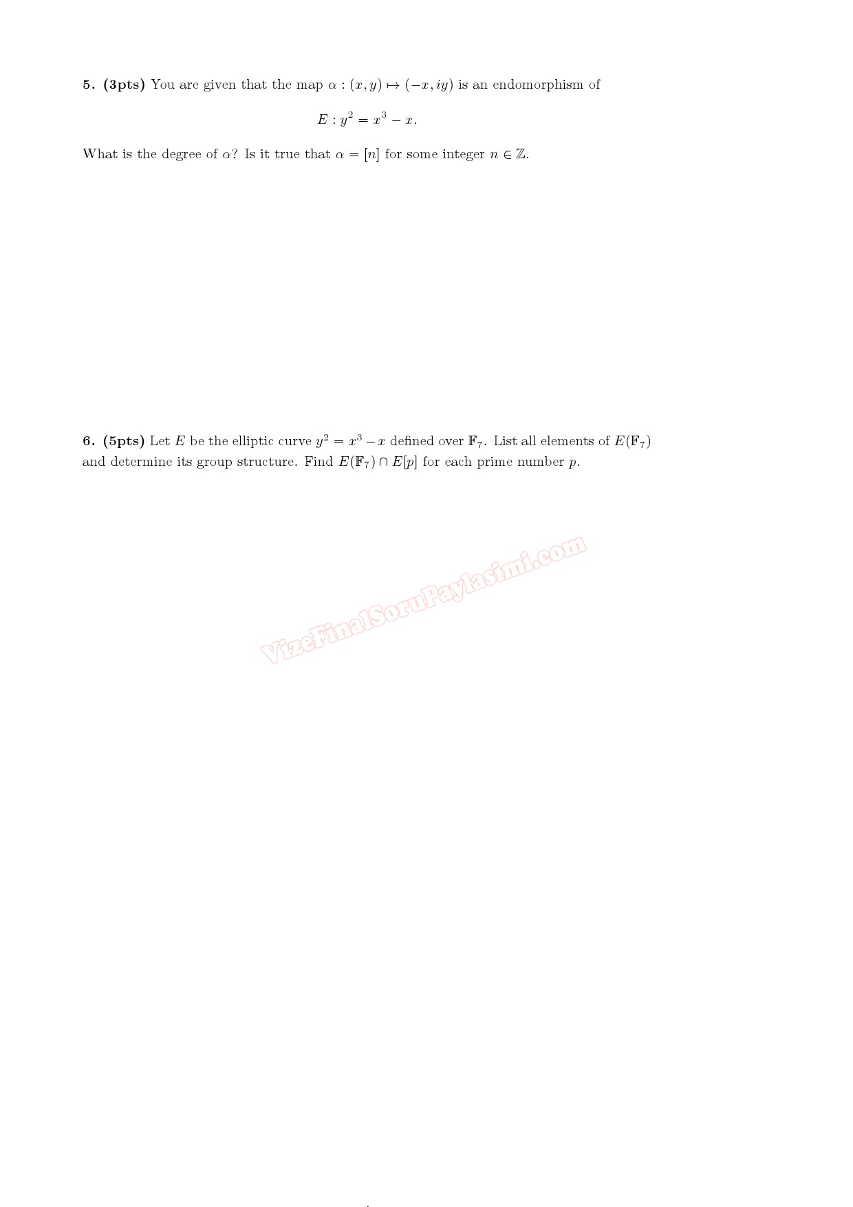 Elliptic Curves in Cryptography First Midterm Exam Questions ODTU