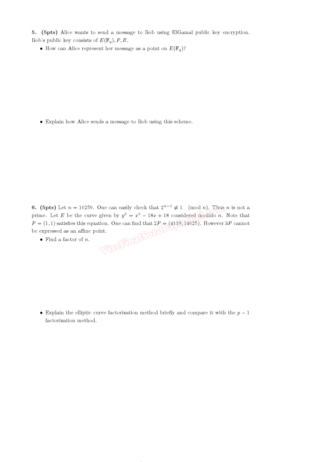 Elliptic Curves in Cryptography Second Midterm Exam Questions ODTU