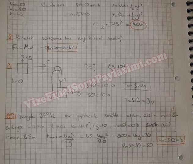 Fizik -1 Dersi Final Çalışma Soruları Çözümleri Fırat Üniversitesi