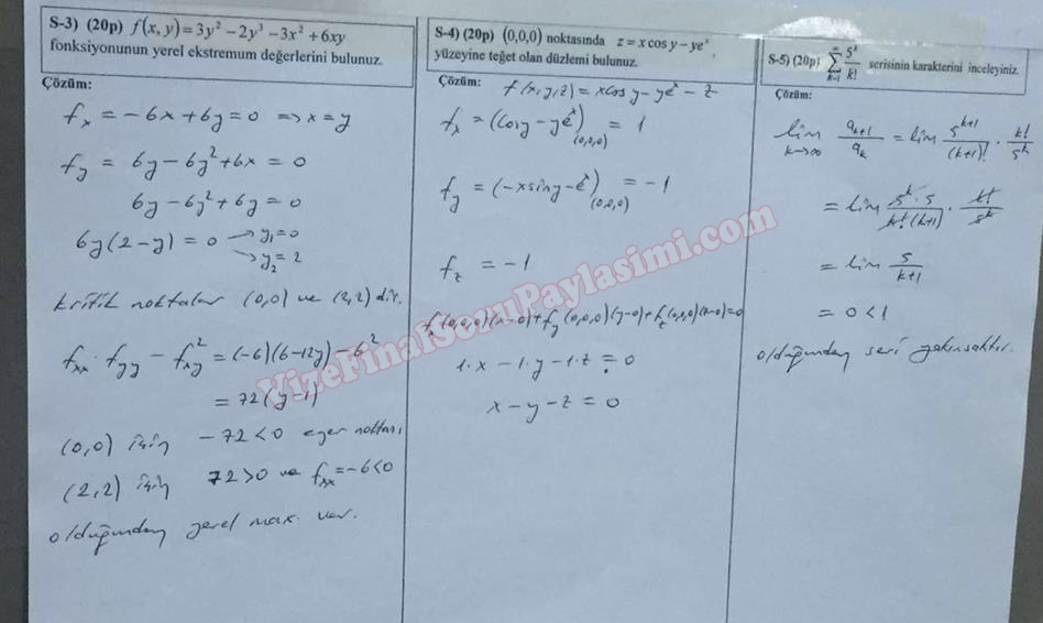 Matematik -2 Final Soruları Final Soruları Cevapları Çözümleri