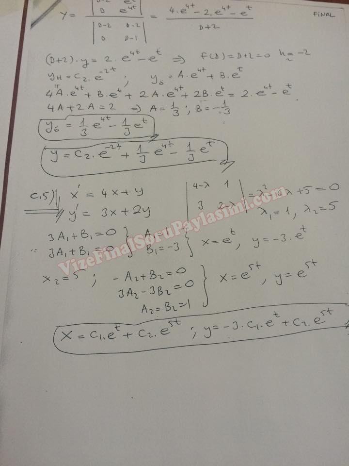 Marmara Üniversitesi Diferansiyel Denklemler dersi final soruları cevaplari