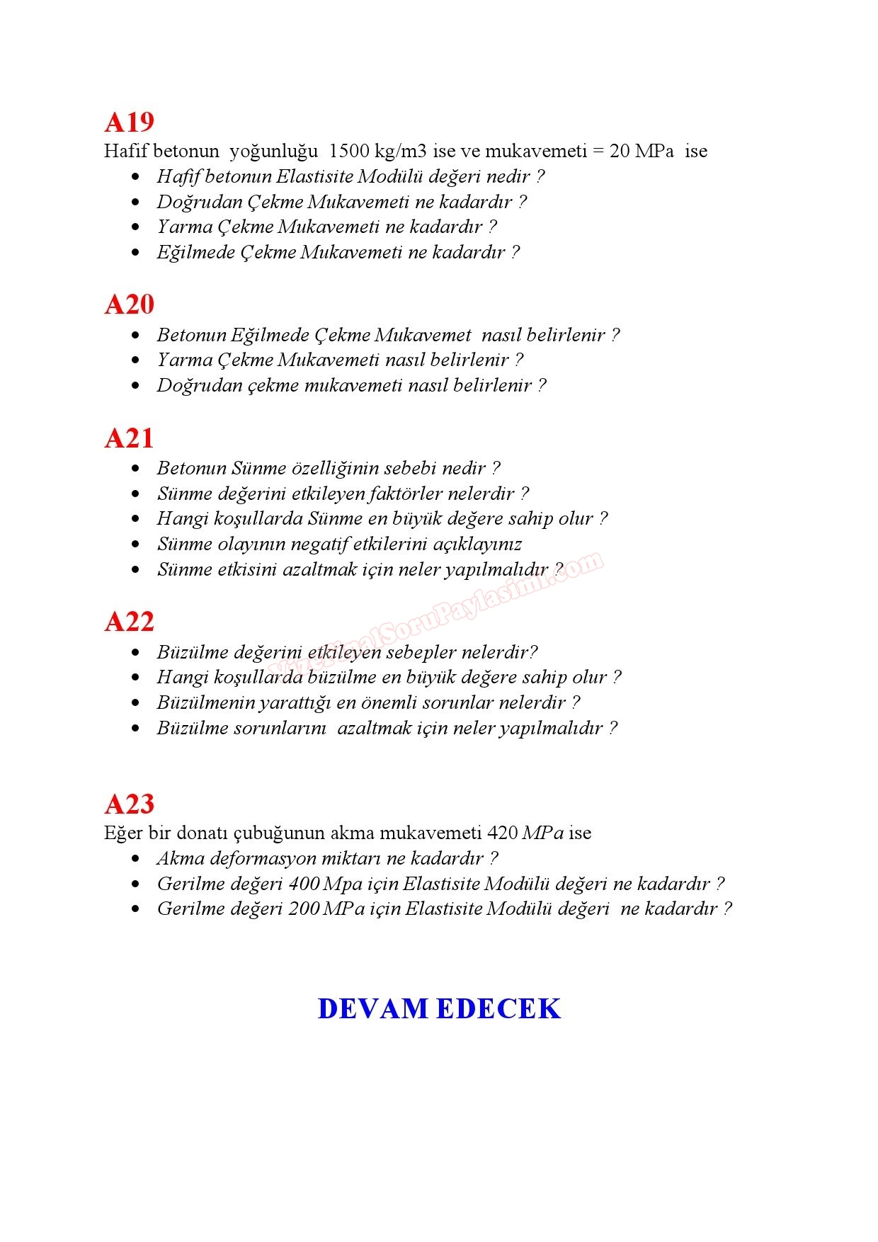 Betonarme Metin Soruları