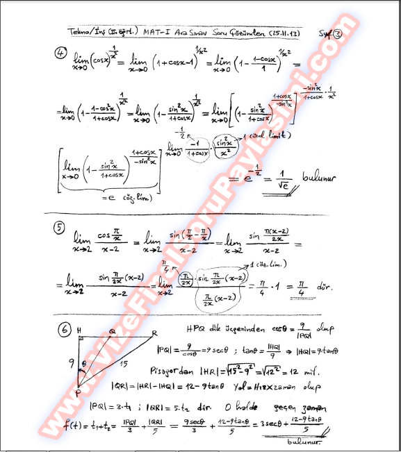 Matematik-1 Vize Soruları Ve Cevapları-2013