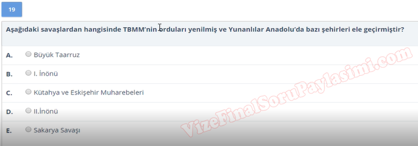 Vize ve Final Soruları / Sakarya Üniversitesi / Atatürk İlkeleri ve İnkılâp Tarihi -1