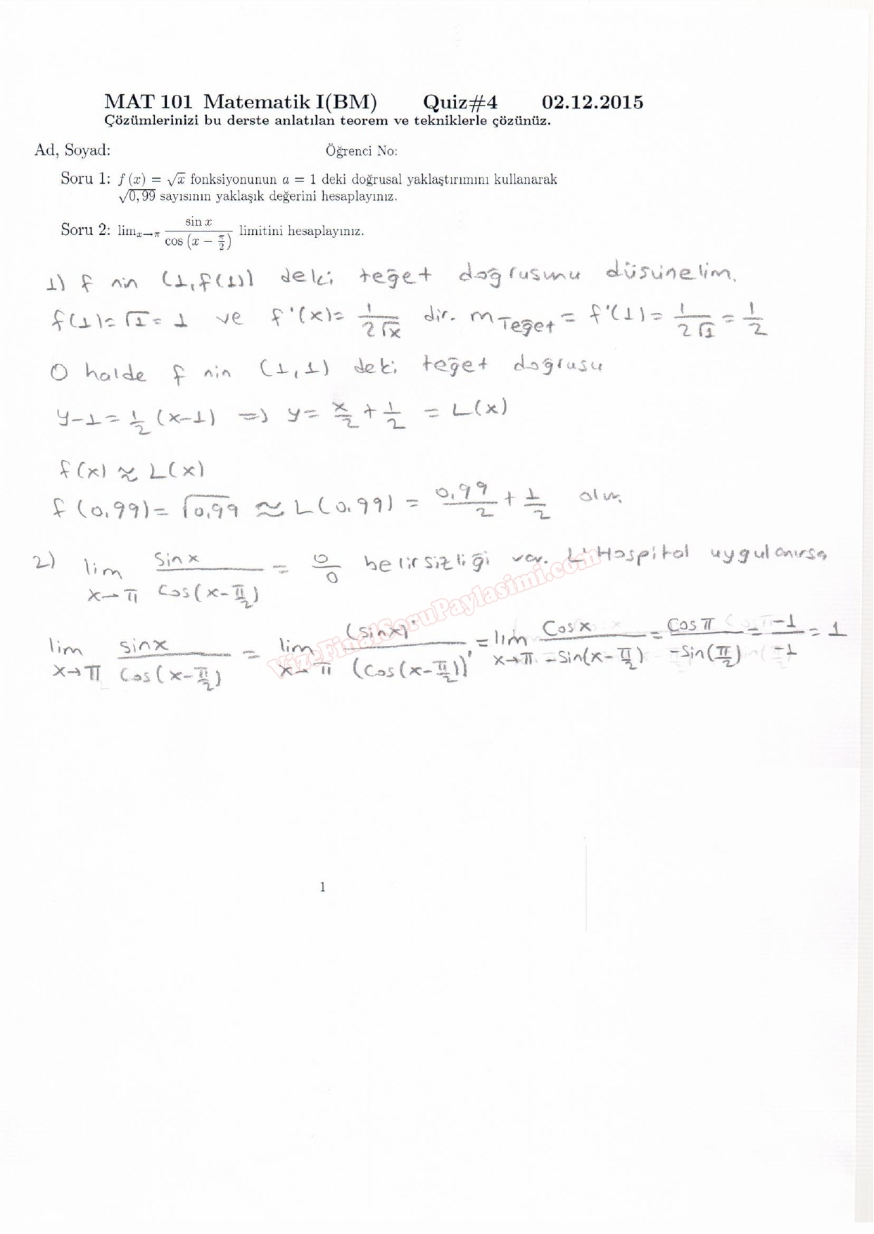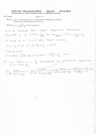 Süleyman Demirel Üniversitesi matematik -1 dersi quiz sorulari