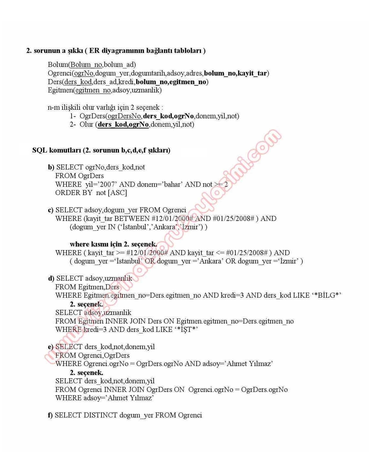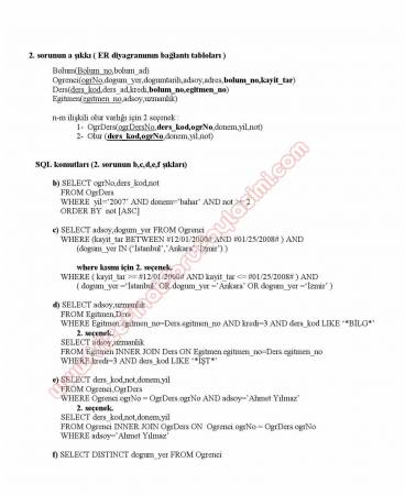 kırklareli üniversitesi veri tabanı yonetim sistemleri dersi vize soruları cevapları klu