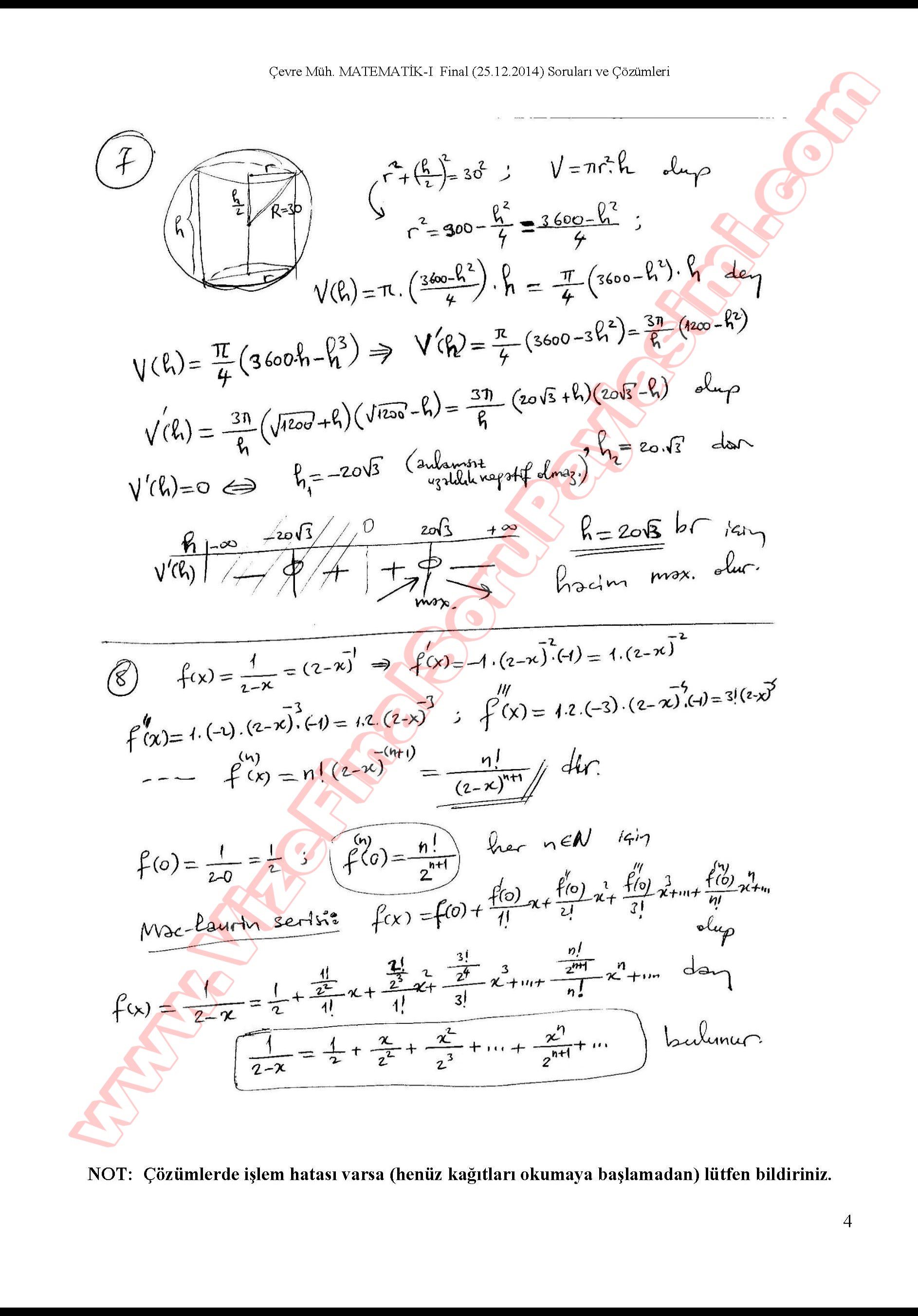 Matematik-1 Final Soruları Ve Cevapları-2014