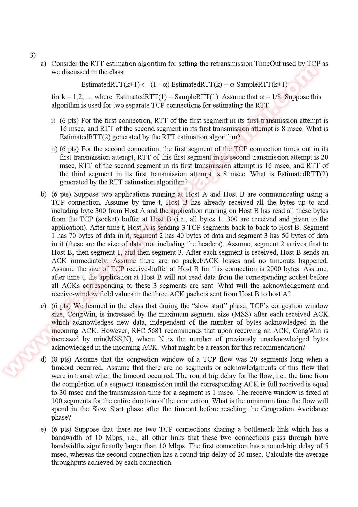 Computer Networks Midterm Questions - Spring 2010 11-07-2015, 00:42