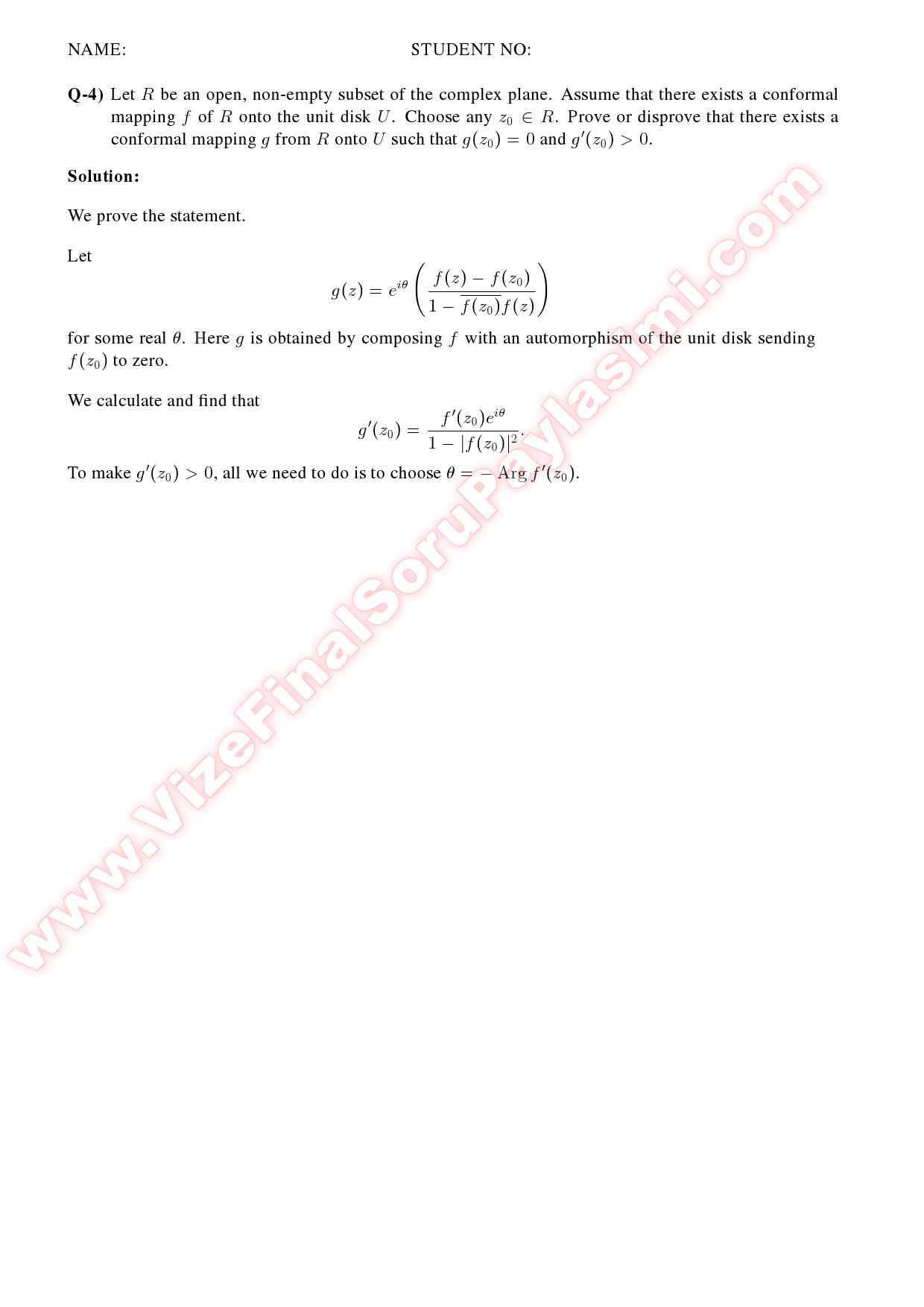 Vize ve Final Soruları / Bilkent Üniversitesi / Complex Analysis -2