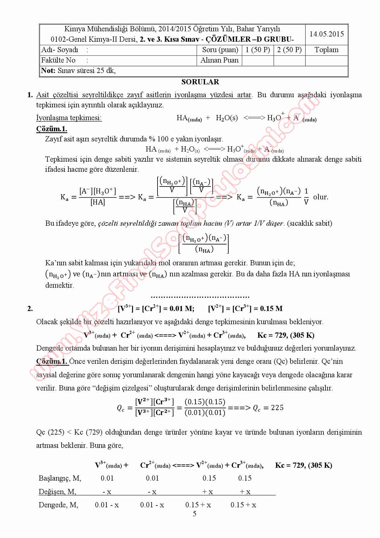 Genel Kimya -2 1.Kısa Sınav Soruları ve Çözümleri 1-08-2015, 18:44