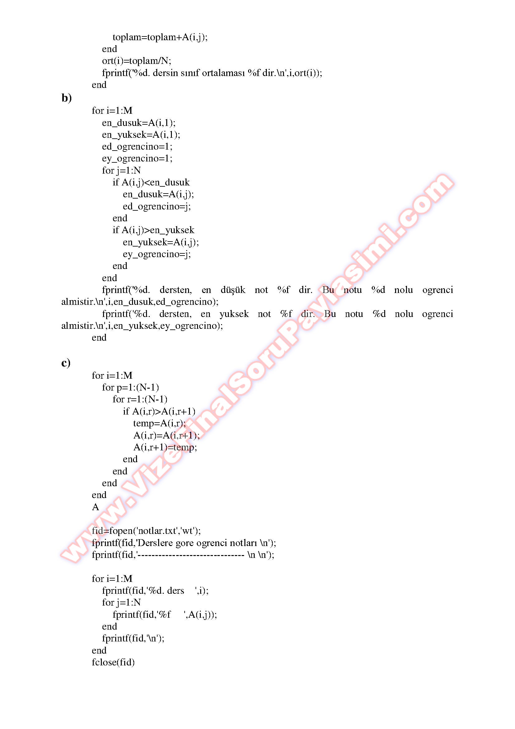 Vize ve Final Soruları / Yıldız Teknik Üniversitesi / Algoritma ve Programlama