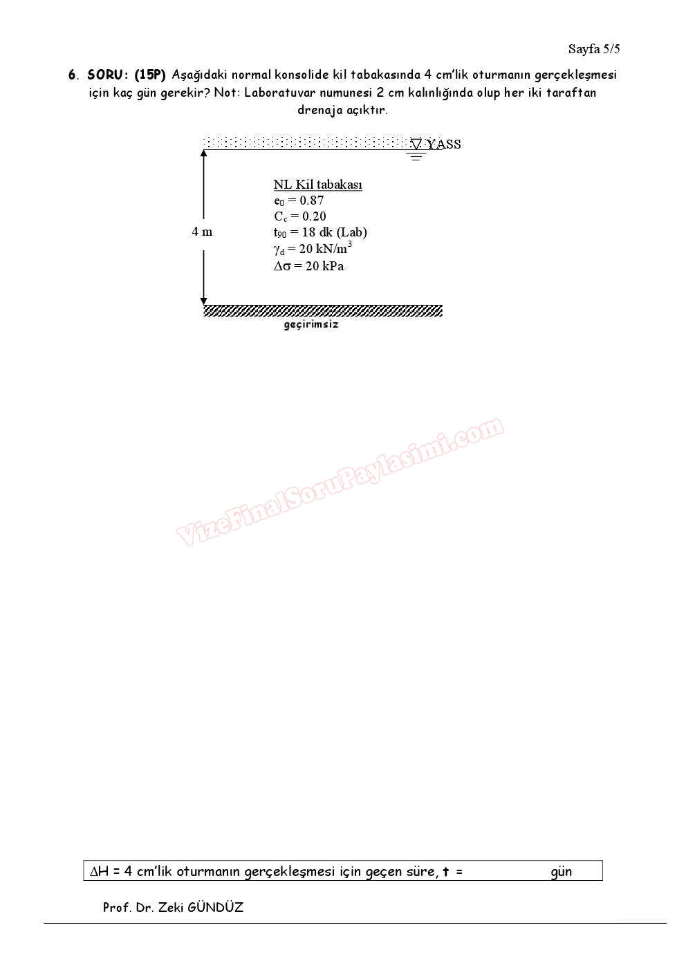 Zemin Mekaniği Dersi Final Soruları Sakarya İnşaat Mühendisliği