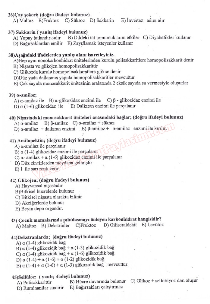 Biyokimya Dersi Vize Final Soruları 6-11-2015, 00:41
