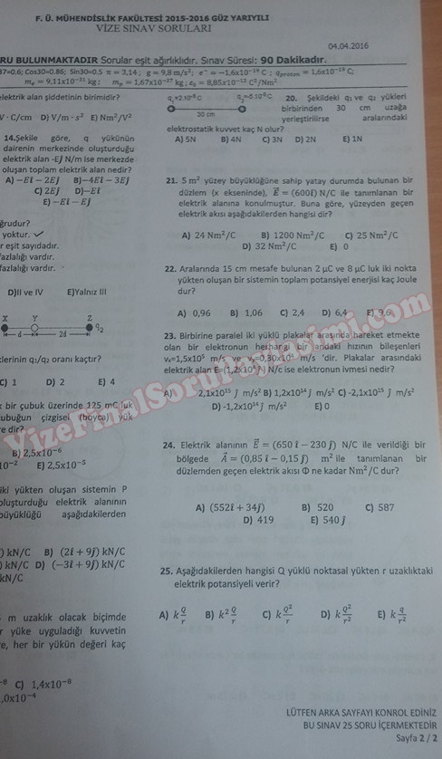 Fizik -2 Vize Soruları (Test) - 20.04.2015 31-03-2016, 17:48