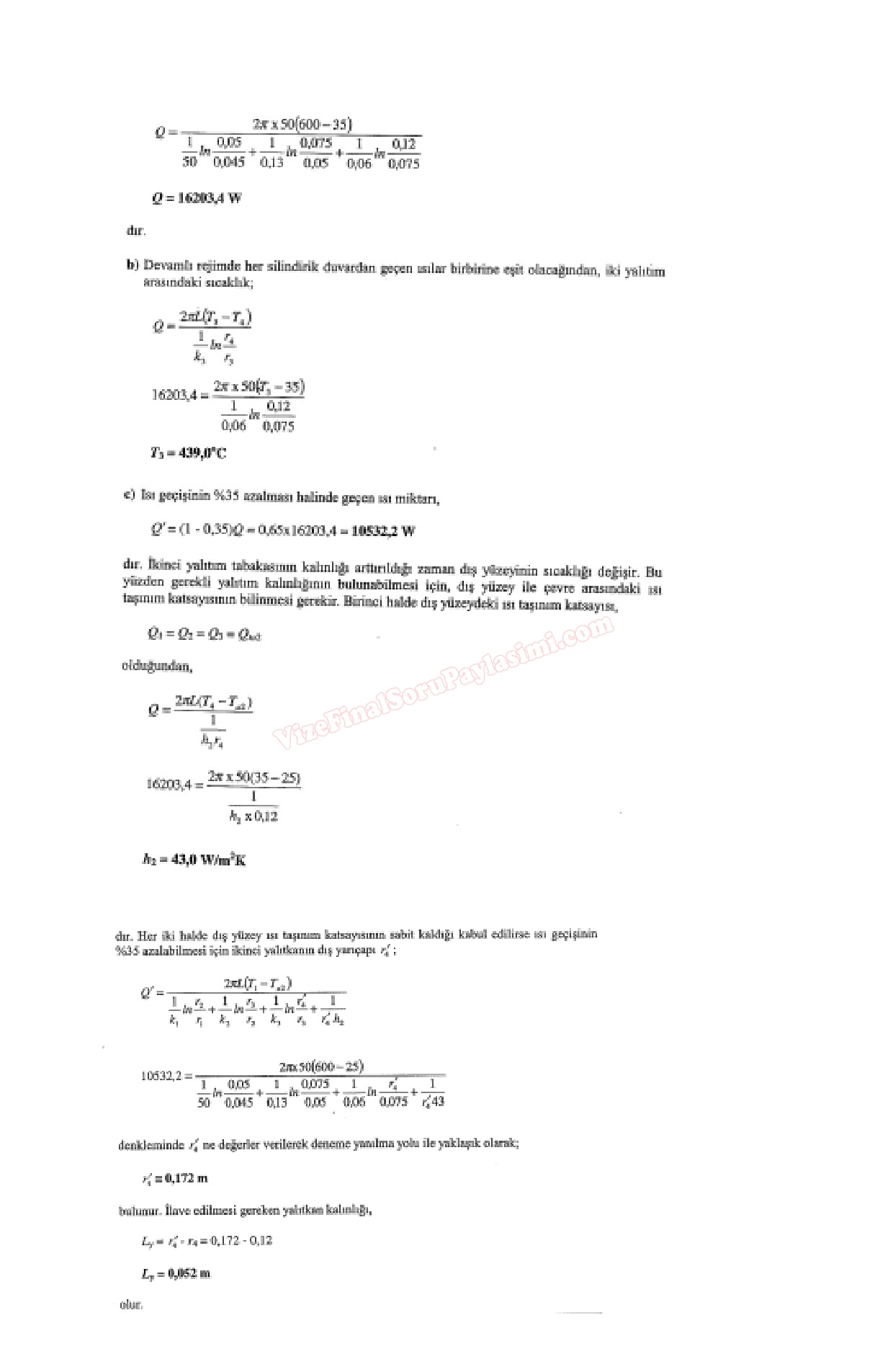 Vize ve Final Soruları / Harran Üniversitesi / Isı Transferi Dersi