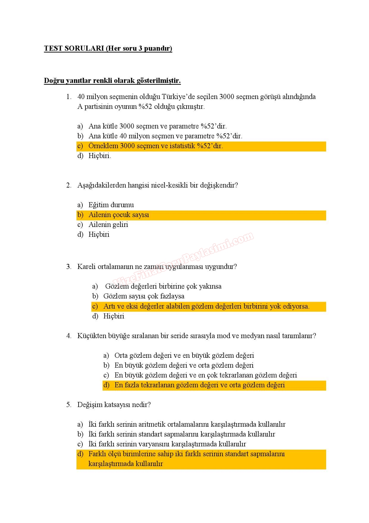 İstatistik Ara Sınav Çalışma Soruları 2014 29-03-2015, 04:52
