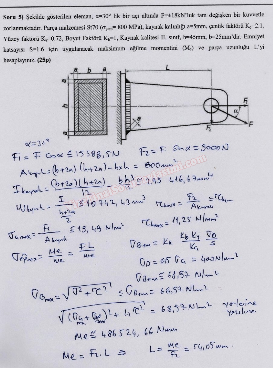 Vize ve Final Soruları / Süleyman Demirel Üniversitesi / Makina Elemanları -1