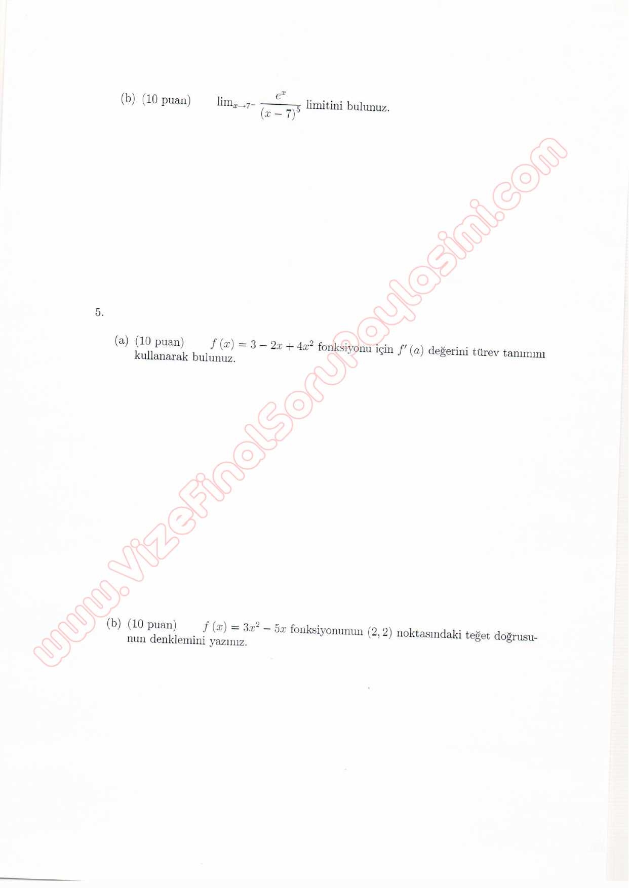 Süleyman Demirel Üniversitesi matematik -1 dersi quiz sorulari vize soruları