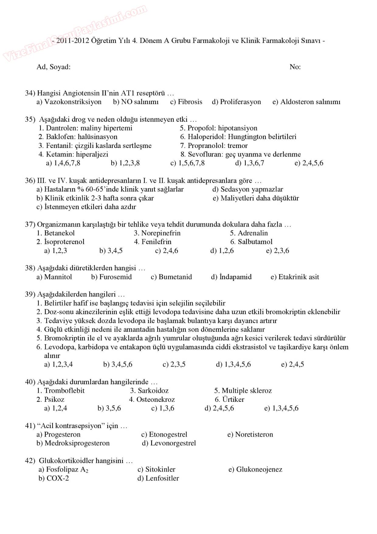 Farmakoloji Dersi Sınav Soruları 3-11-2015, 01:33