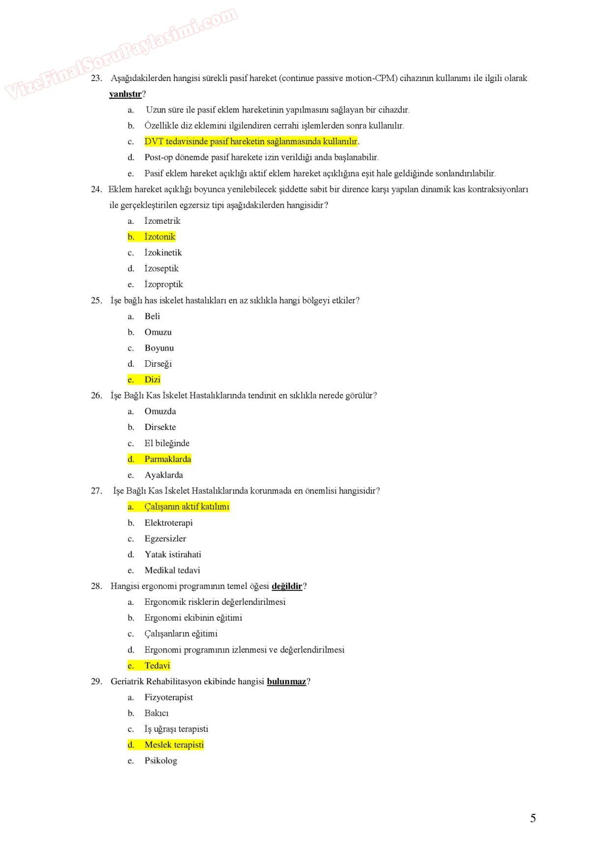 Vize ve Final Soruları / İstanbul Üniversitesi / Fiziksel Tıp ve Rehabilitasyon Dersi