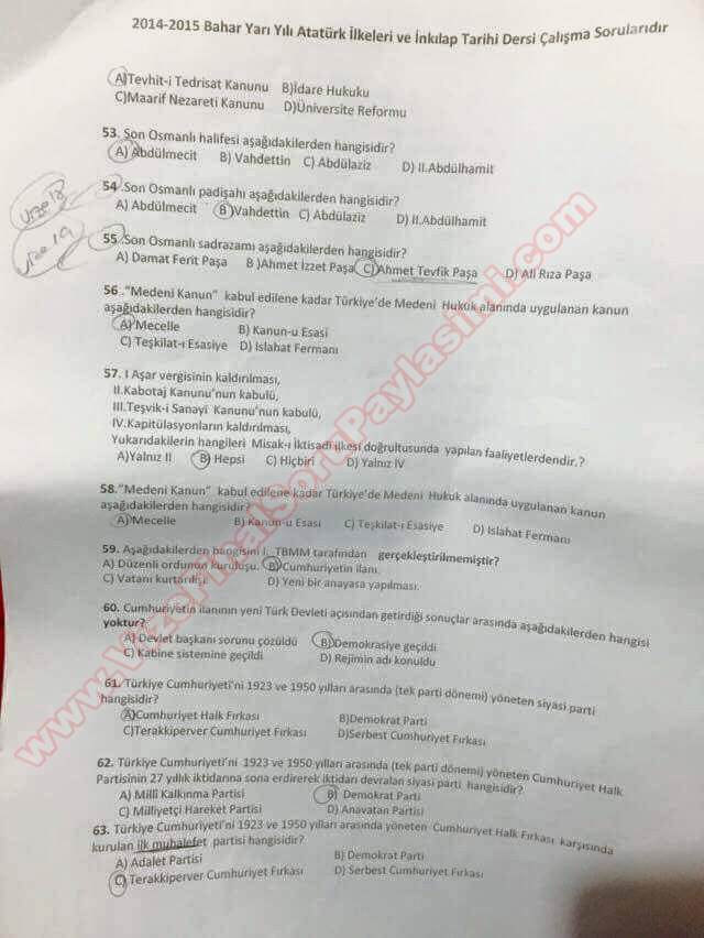 Atatürk İlkeleri ve İnkilap Tarihi -2 Final Soruları - 2015 3-06-2015, 15:24