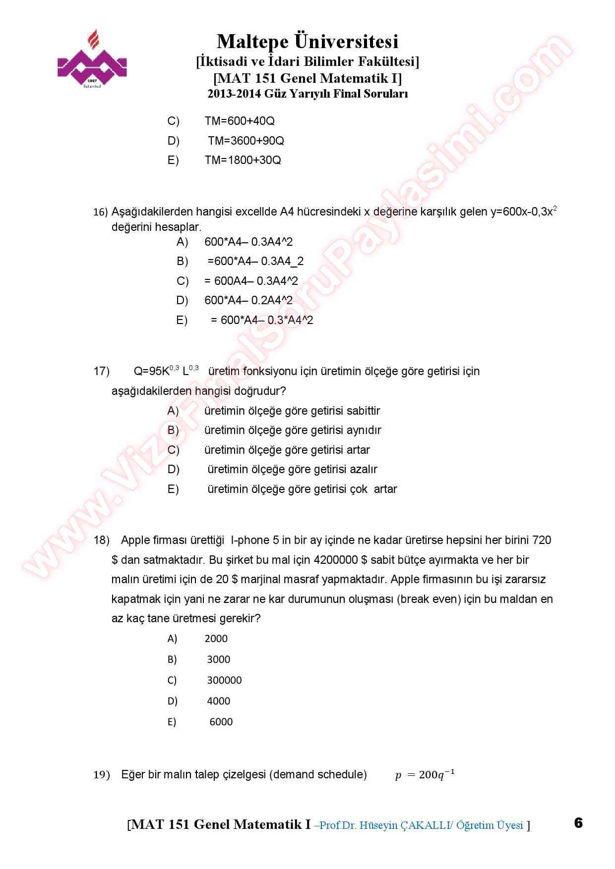 İktisadi Matematik Final Soruları-2014 23-04-2015, 18:30