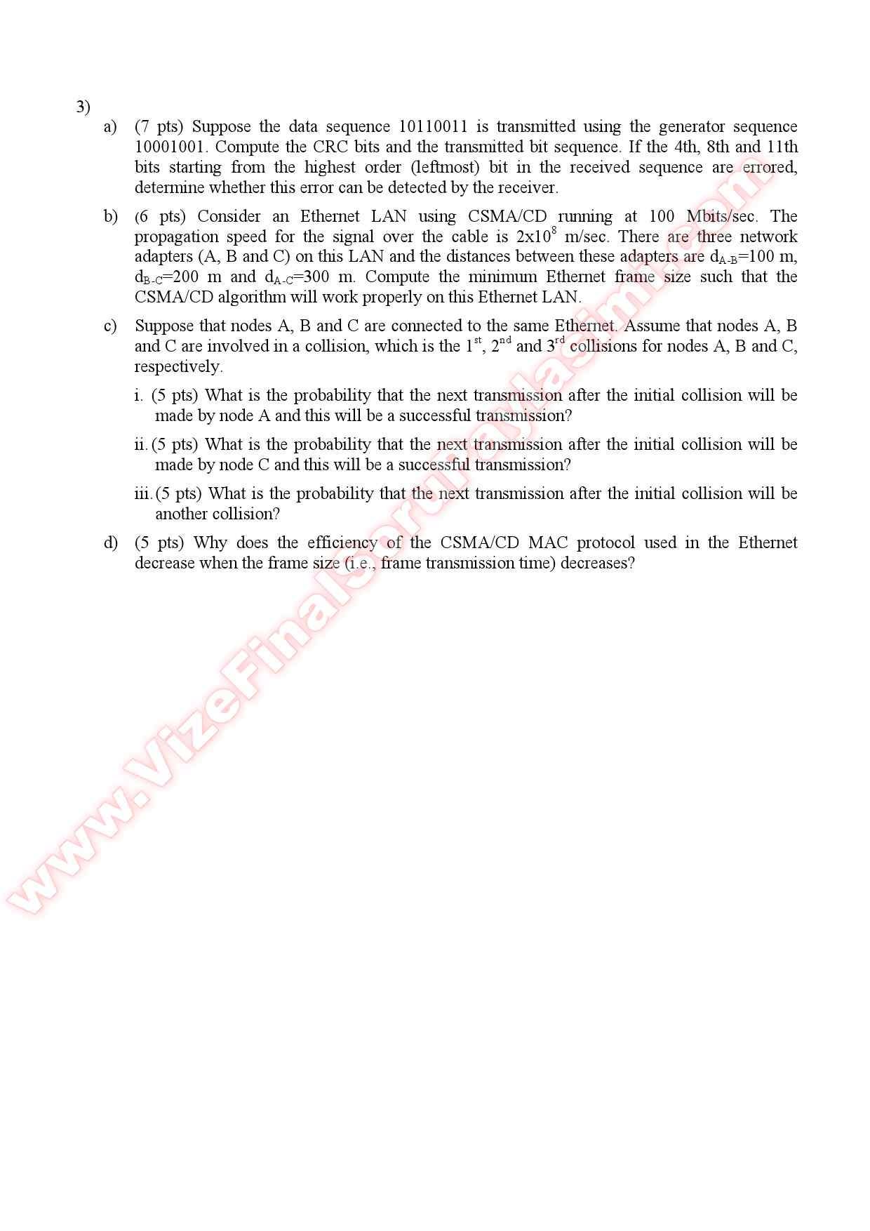 Computer Networks Midterm Questions - Fall 2010 11-07-2015, 00:40