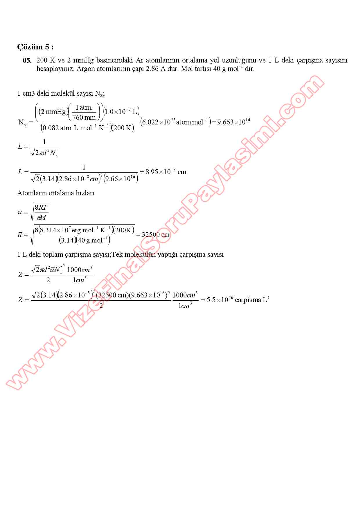 fiziksel kimya-1 kimya1 final sorulari cevaplari cozumleri balikesir