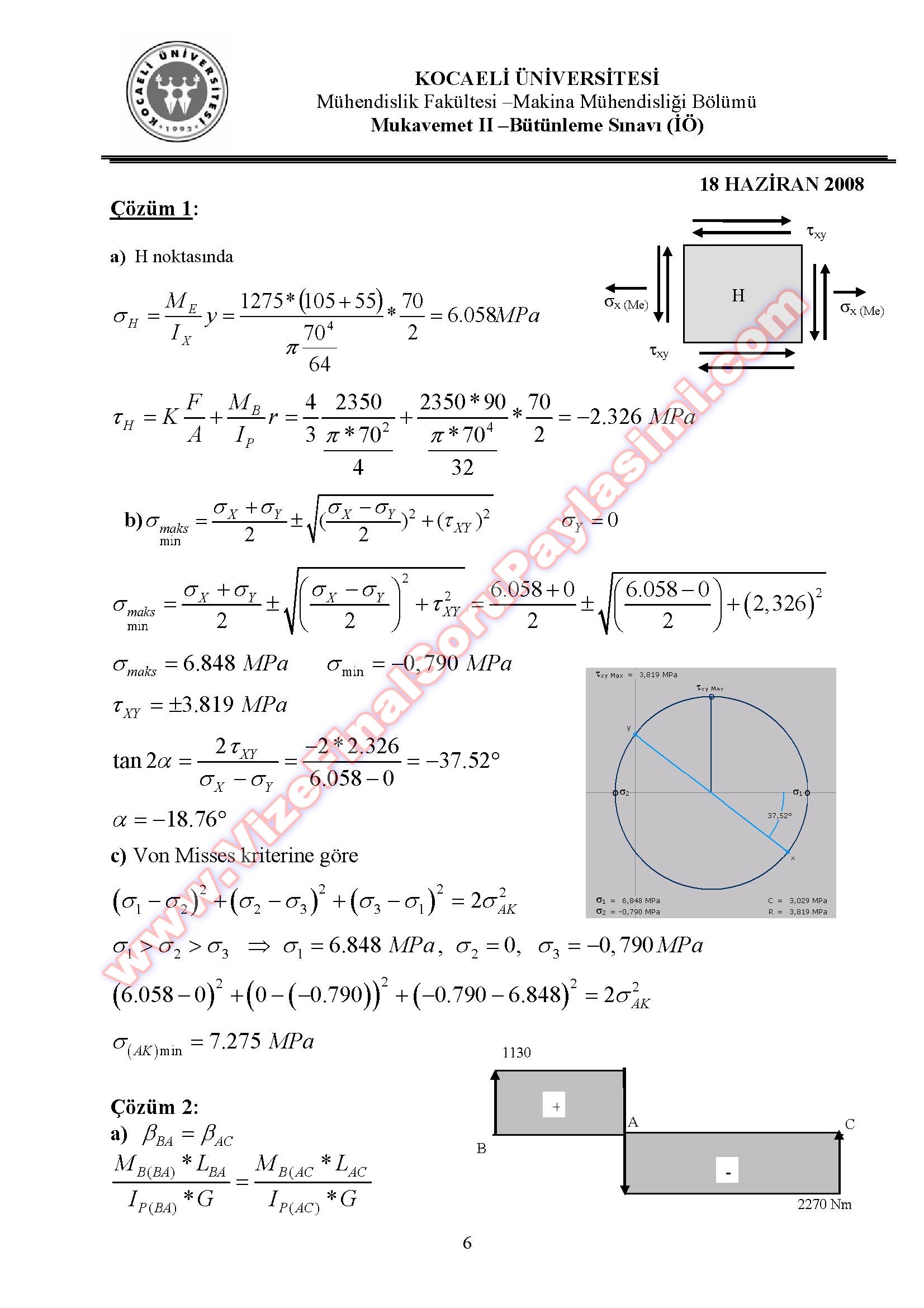 Vize ve Final Soruları / Kocaeli Üniversitesi / Mukavemet-2