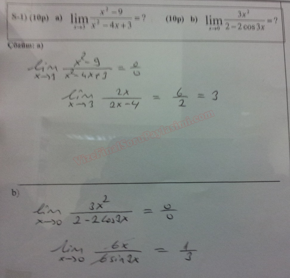 Matematik -1 Final Soruları Fırat Üniversitesi 2016 Teknoloji