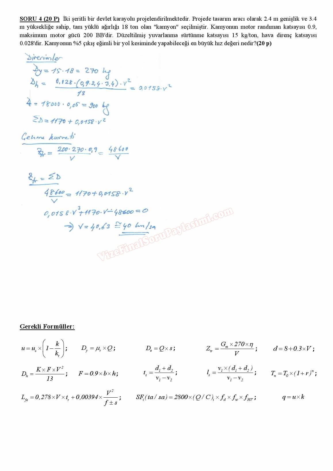 Pamukkale Üniversitesi Ulaştırma 1 dersi vize soruları cevaplari uni pau