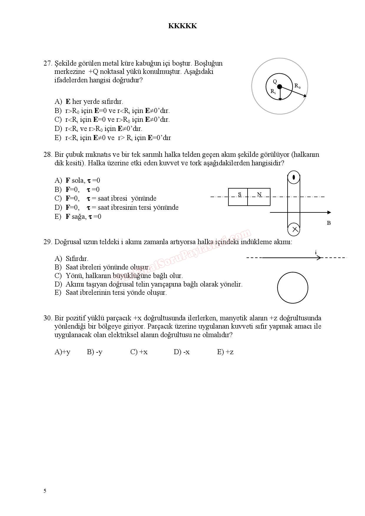 fizik fizik-2 yaz donemi final soruları Düzce Üniversitesi