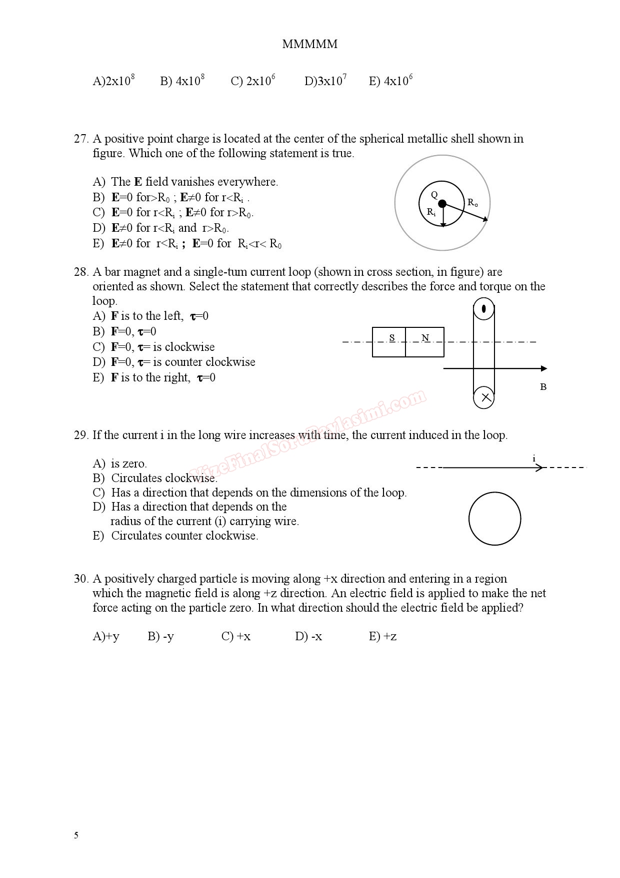 Physics - 2 Summer Semester Final Exam Questions
