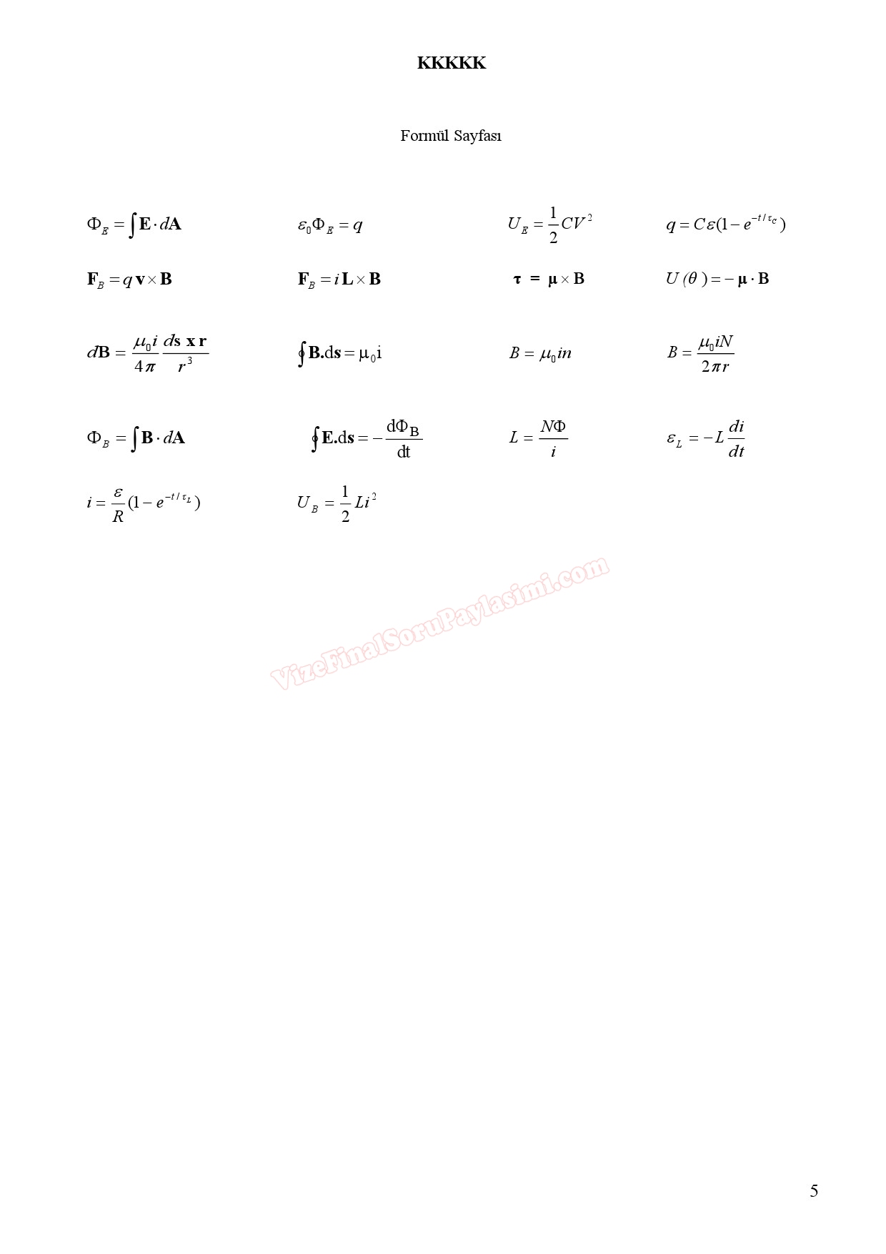 Fizik -2 Genel Sınav Soruları Final Soruları 2006 Düzce Üniversitesi