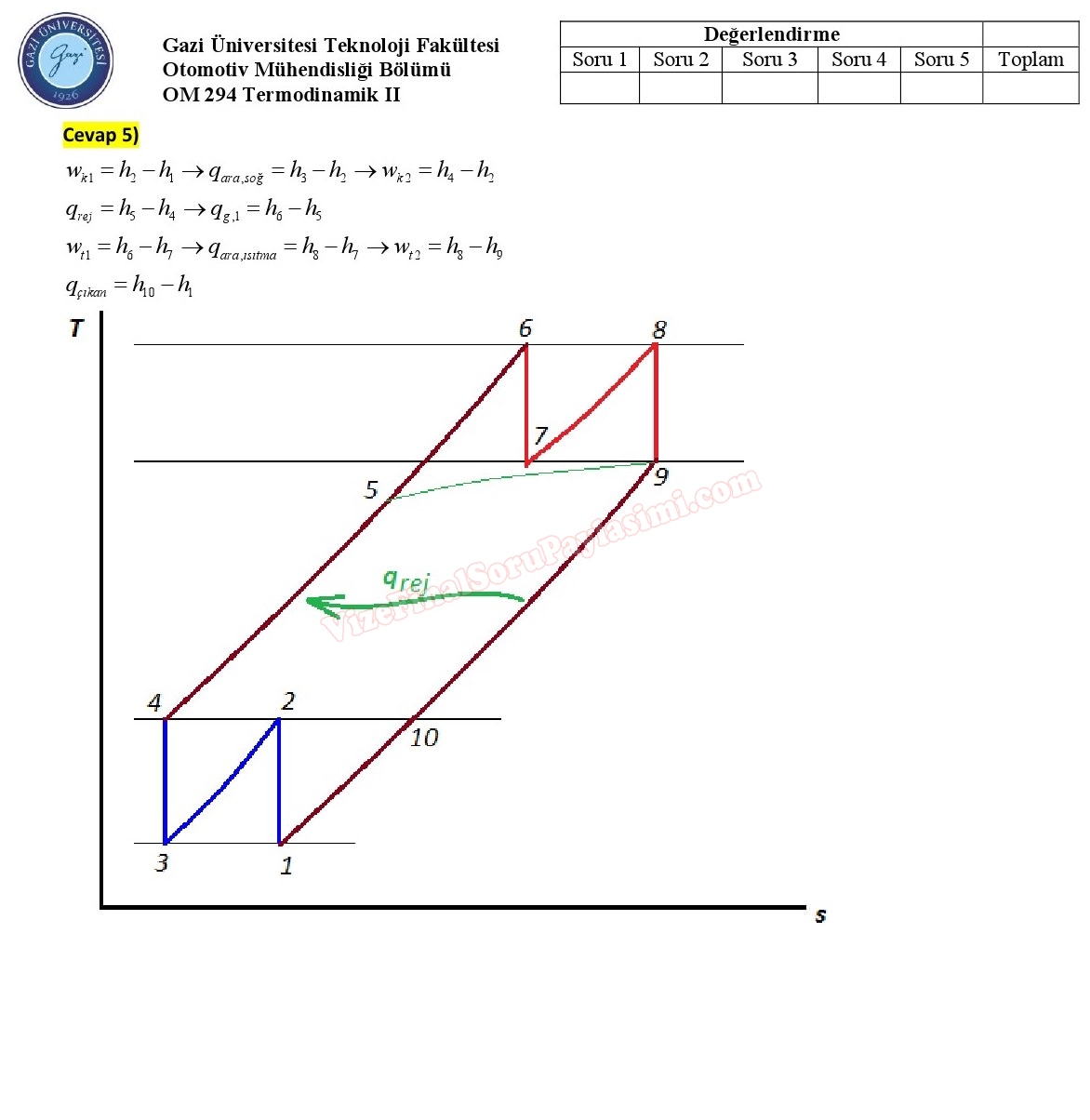 Termodinamik -2 Termodinamik Dersi Final Soruları ve Cevapları Genel Sınav Soruları Gazi Üniversitesi