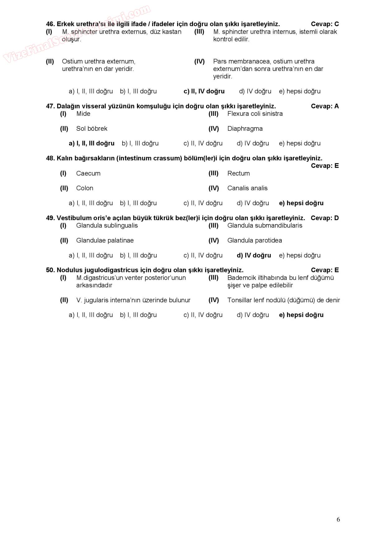 anatomi dersi sınav soruları